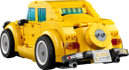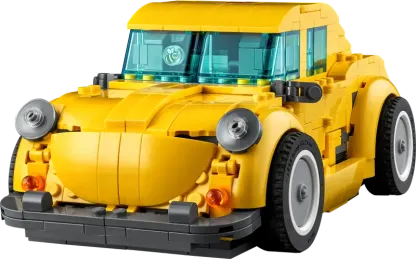 車モードでディスプレイされているレゴ バンブルビー モデルと情報プレート