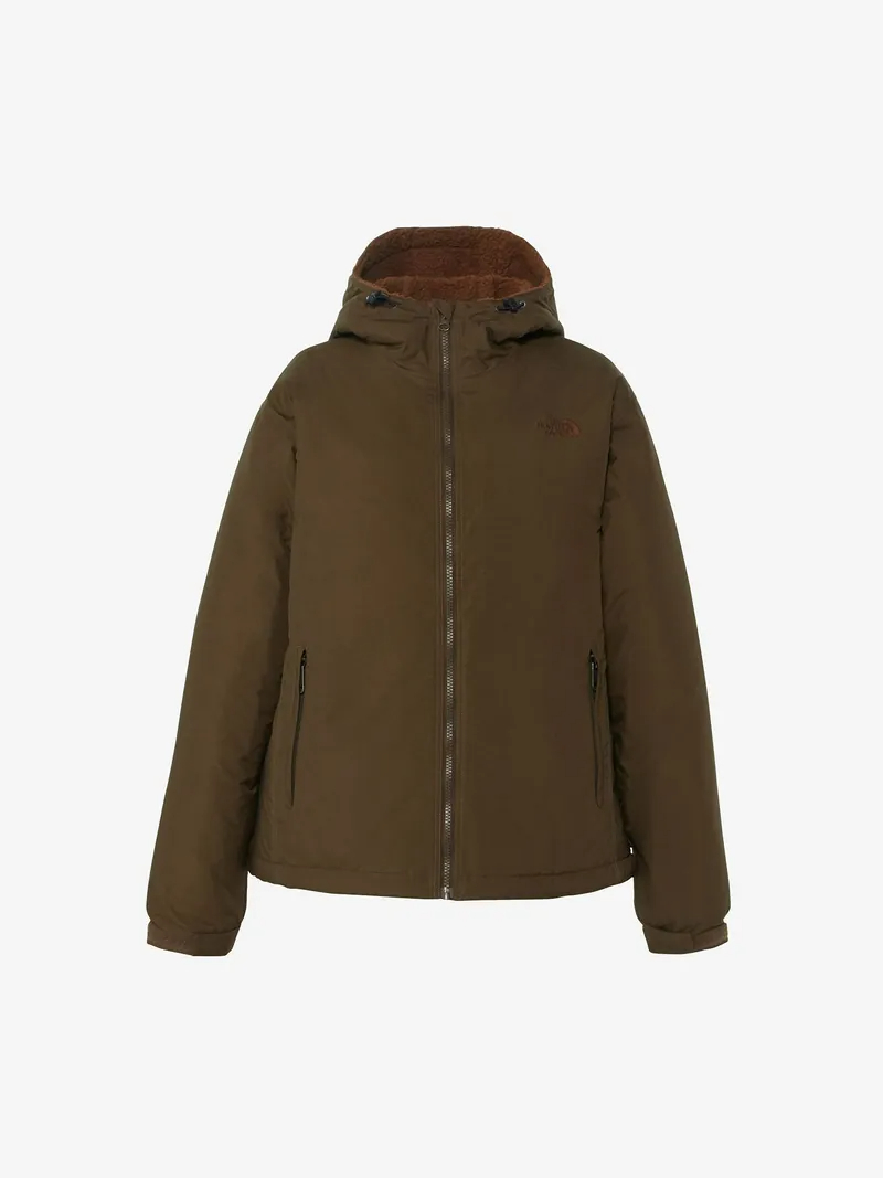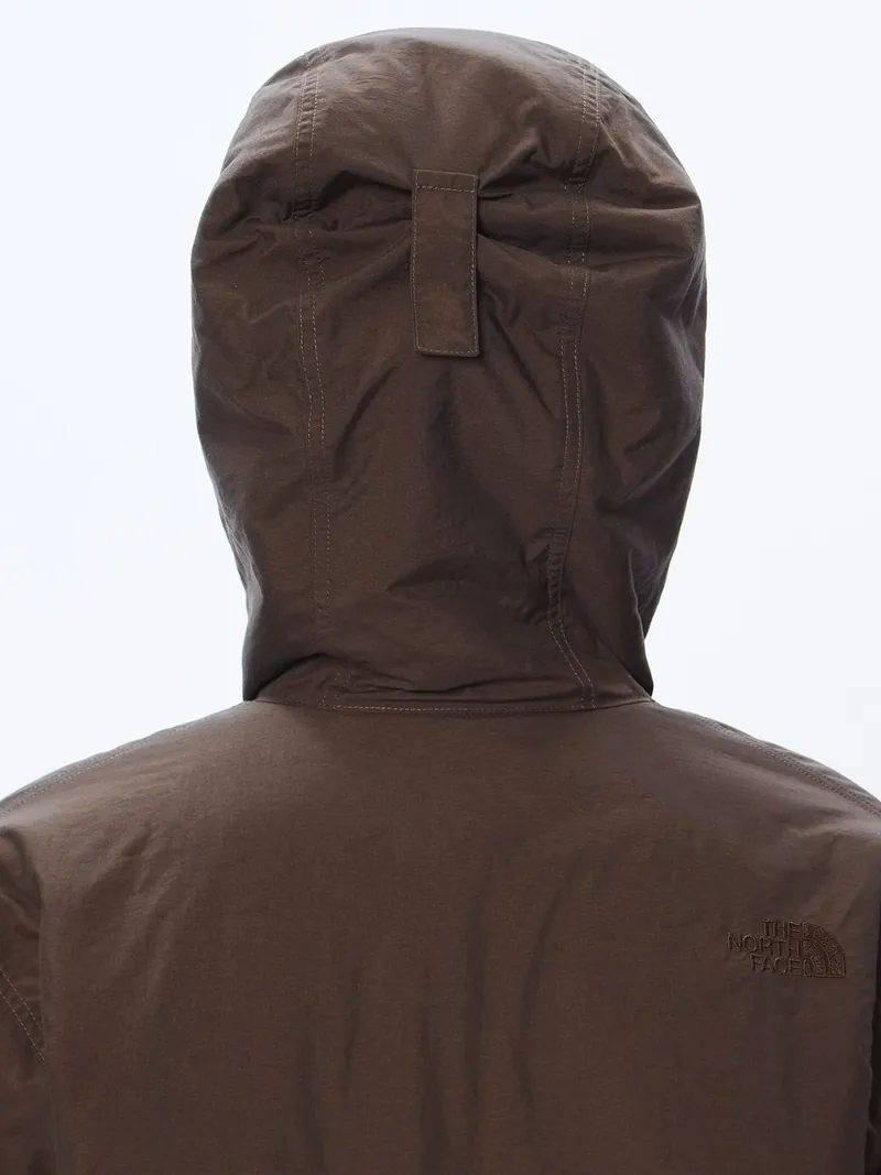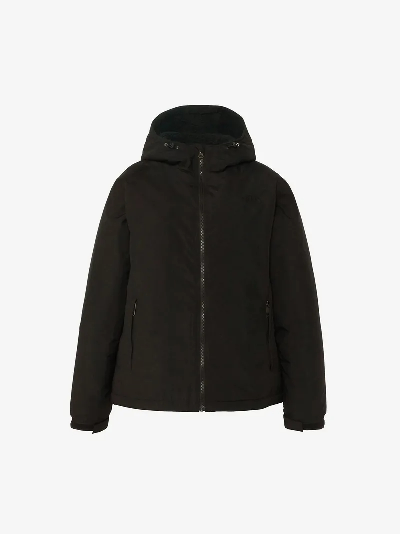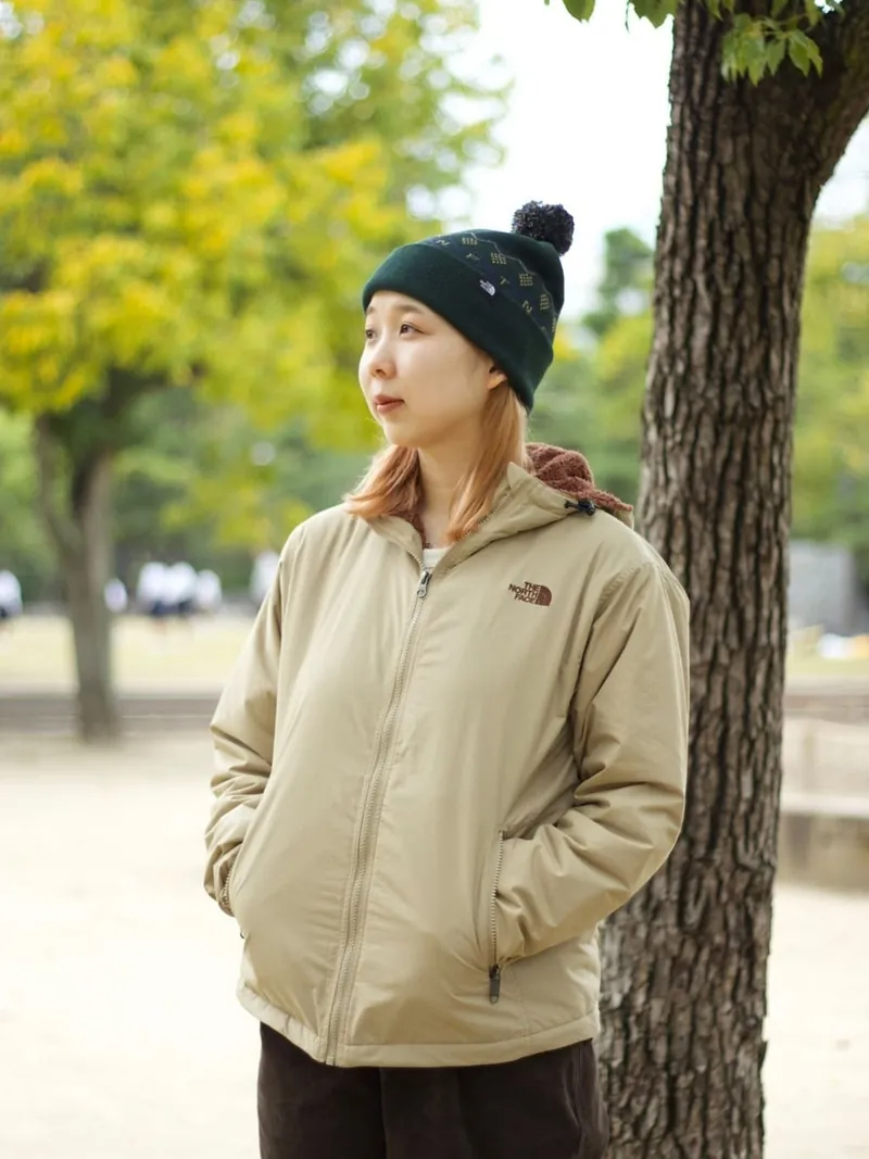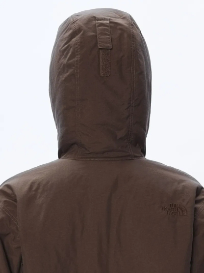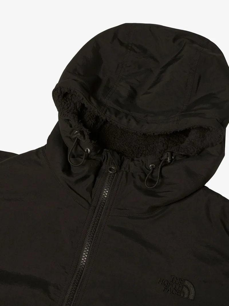 外装材には防水加工を施しているので、多少の雨や雪にも対応可能です。身頃とフードの裏地には毛足の短いフリースを使用しており、柔らかく肌触りが良く暖かいです。