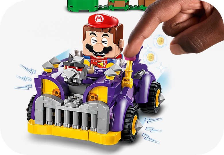 - インタラクティブな遊び – レゴ®マリオ™、レゴ®ルイージ™、レゴ®ピーチのいずれかを車に乗せるとクラクションやエンジン、きしむタイヤの音が聞こえ、コインをゲットできます