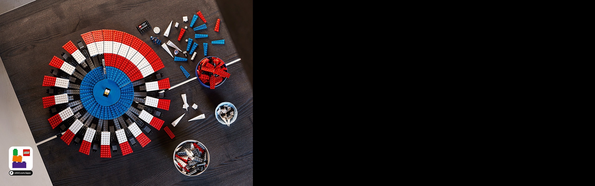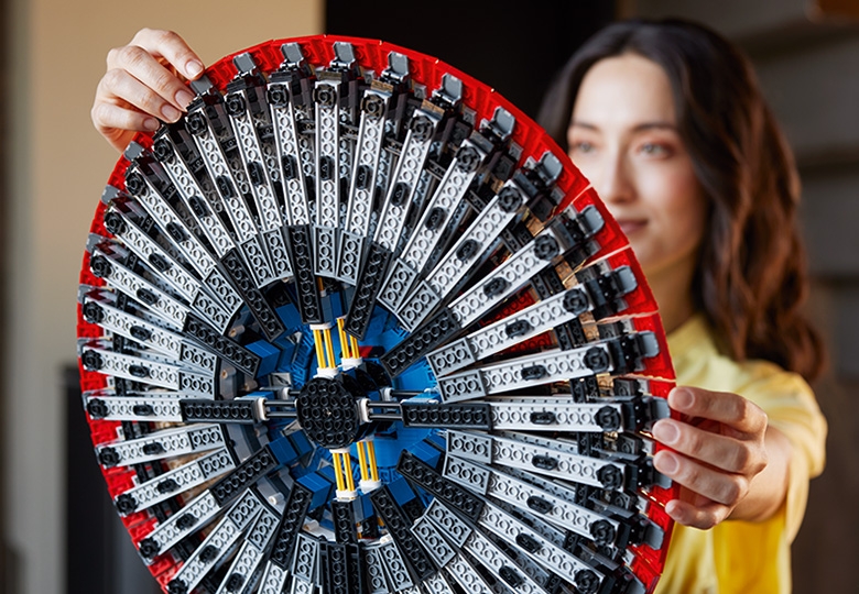 直径47cmを超える円盤型シールドを組み立てて、銘板付き専用スタンドに飾って楽しめます。さらに、本セットはLEGO Builderアプリのデジタル版組み立て説明に対応しています。