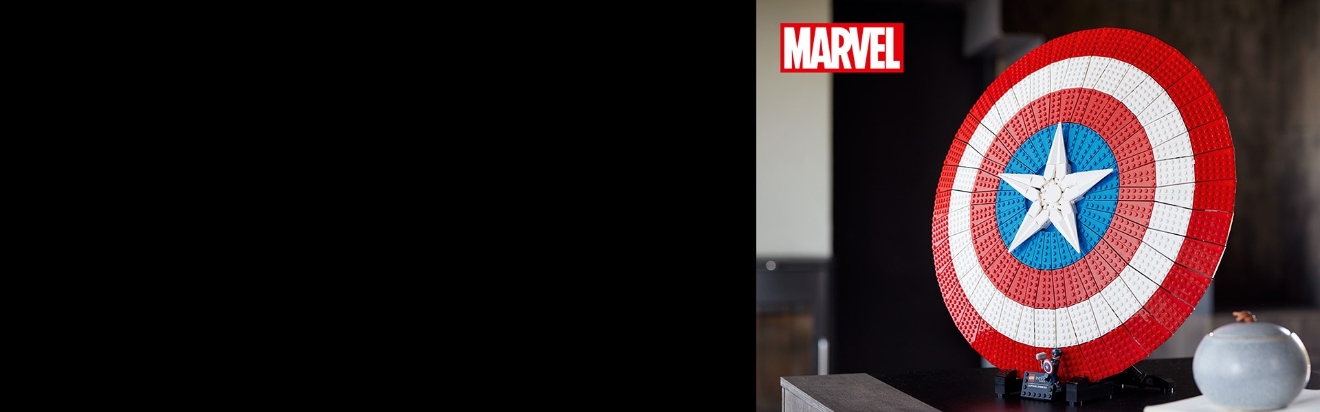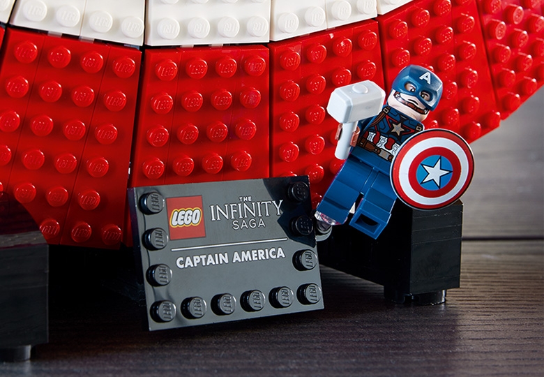 キャプテン・アメリカのミニフィギュアを仕上げにプラスすれば、魅力あるディスプレイが完成します。
